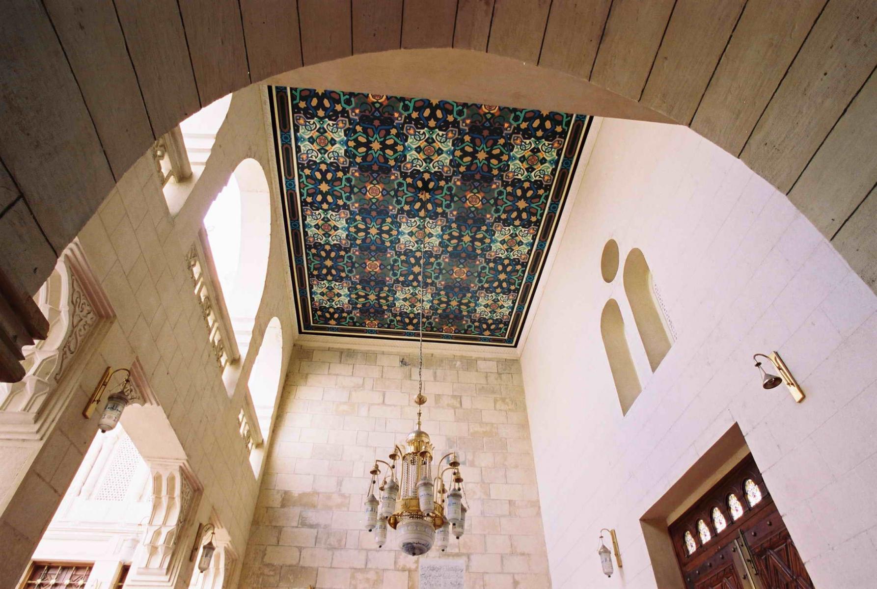 The restoration of the old mosque by its ceilings and its dome the Interior Ministry, the work of an artistic treatment and the restoration of the dovetailed glass artistic windows by the woods and he contains a bigger of amount of the dovetailed glass windows by the woods in Egypt . And the work of the decorations of the dovetailed glass took place by the bullets in Islamic designs and also the artistic designs to the dovetailed glass windows by the plaster and the artistic designing of the ornamental ceilings in the expansion of the new mosque, the restoration of sanctuary and the shrine compartment ceiling Mrs. Sakina with contemporary Islamic artistic view and also designing the direction of the Kaaba in my expansion of the mosque and the restoration of kiblah in the old mosque, an insistence and the execution of the gilded top written tapes in the mosque’s courtyard .