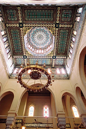 For the first time in the Middle East the execution of domes takes place by the area of 120 AD from the dovetailed glass by the bullets to the single dome and that their designing and their execution took place by what matches and the contemporary Islamic art and that carries the Mamluke nature of the ornamental and the chromatic degrees and the number of the domes in the mosque four in addition to a cosmetic lighting unit in the middle of the main dome from the dovetailed glass by the bullets .