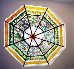 Dome design from the dovetailed glass by the bullets and also artistic windows are marked by the chromatic richness and the artistic and aesthetic high designs and the artist used in it the European style and the new view in the works of the thermal photographing on the glass that has been dovetailed for giving the artistic painting more of the beauty elements to the side of the technical employment and the entrance of more light to the inside .